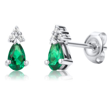 Earrings 9KT (375) White Gold Created Emeralds and Diamonds.