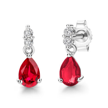 Earrings 9KT (375) White Gold Created Rubies and Diamonds.