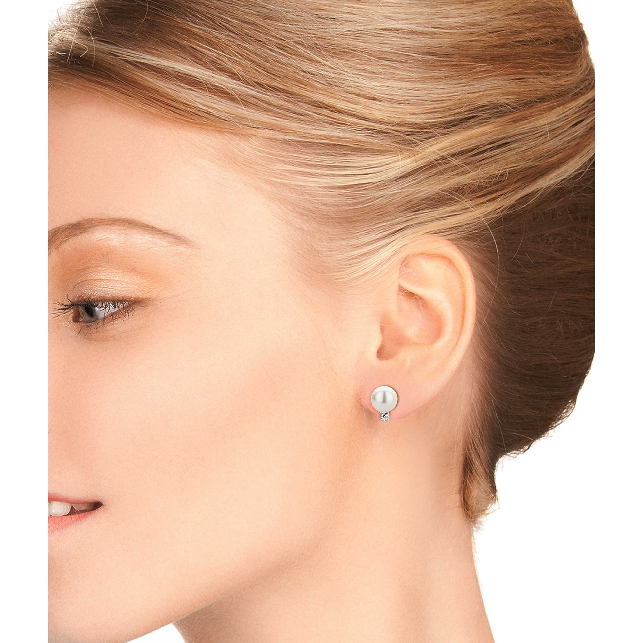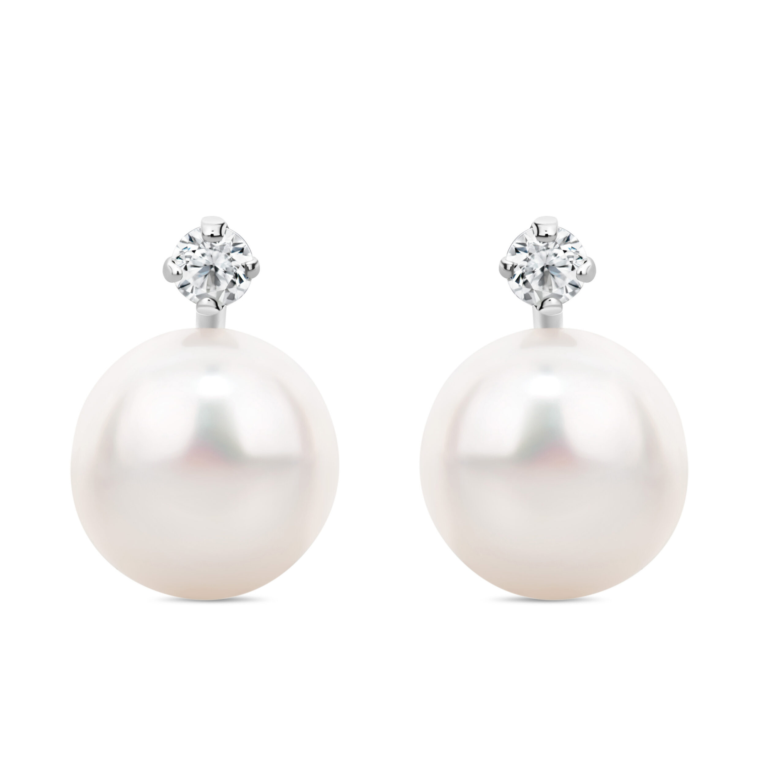 Earrings 9KT (375) White Gold Cubic Zirconia Freshwater Cultured Pearl.
