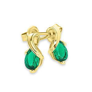 Earrings 9KT (375) Yellow Gold Created Emeralds.