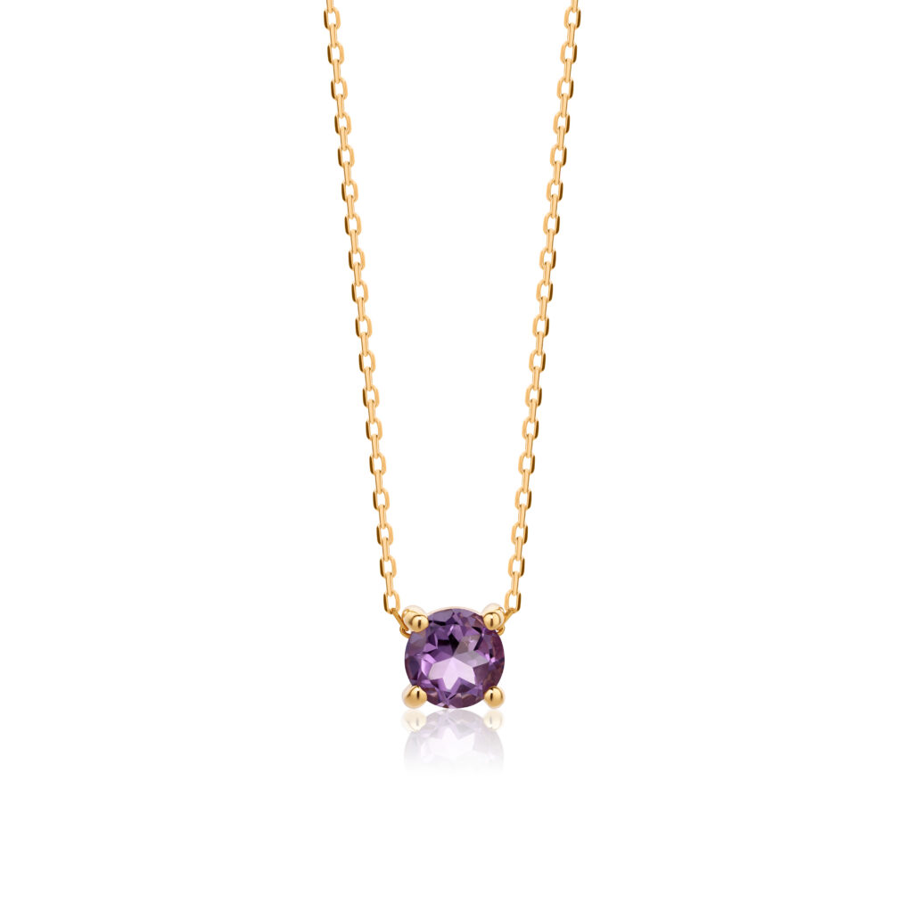 Necklace 14KT (585) Yellow Gold Natural Amethyst.