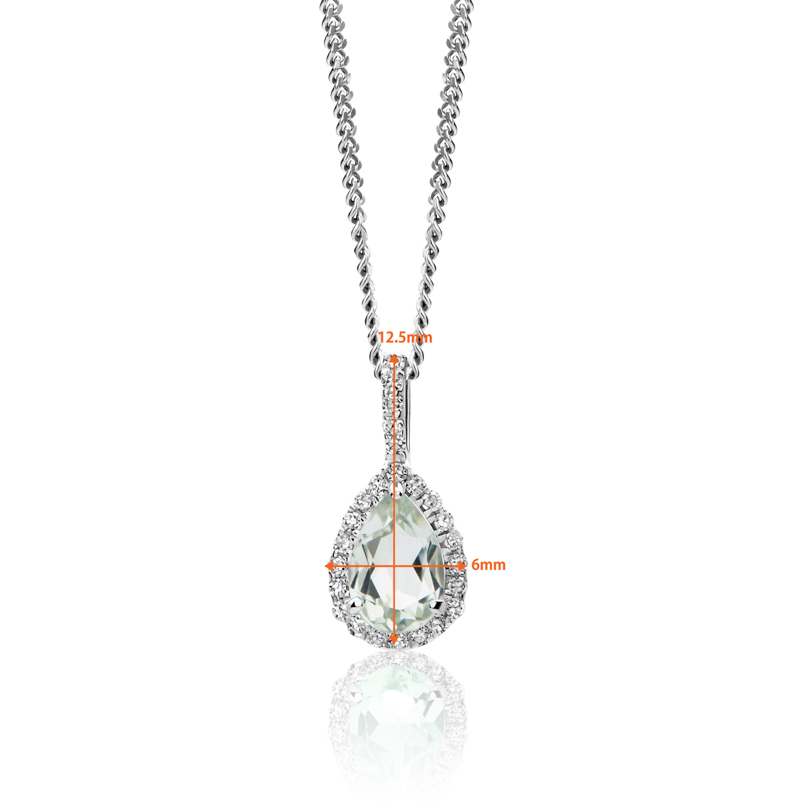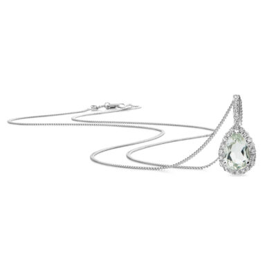 Necklace 9KT (375) White Gold Green Amethyst and Diamonds.