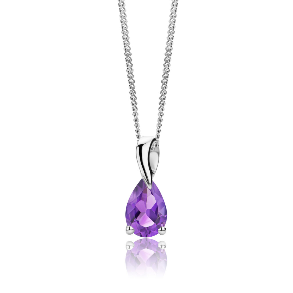 Necklace 9KT (375) White Gold Natural Amethyst.