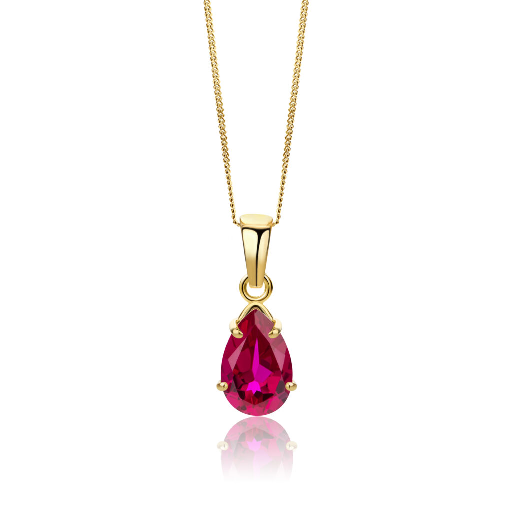 Necklace 9KT (375) Yellow Gold Created Ruby.