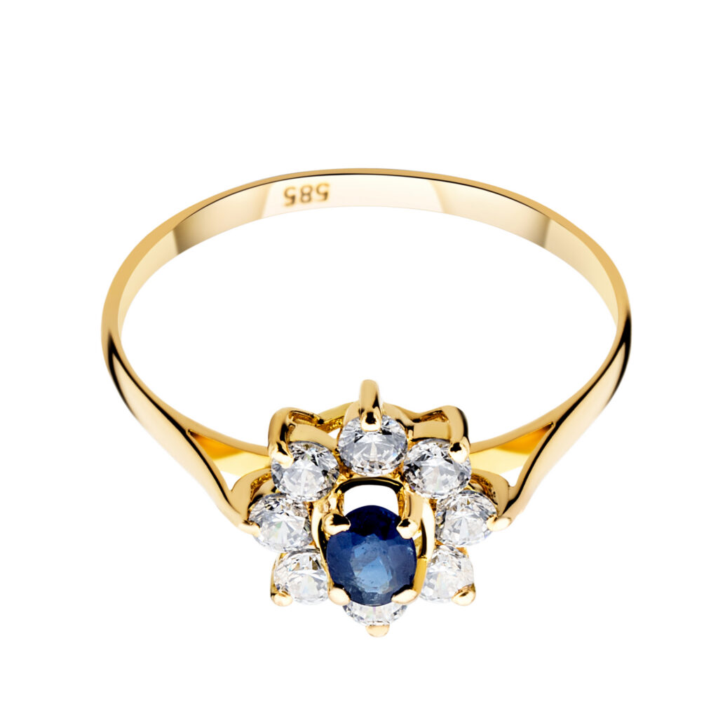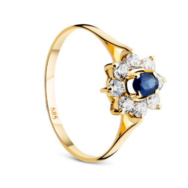 Ring 14KT (585) Yellow Gold Sapphire and Cubic Zirconia.