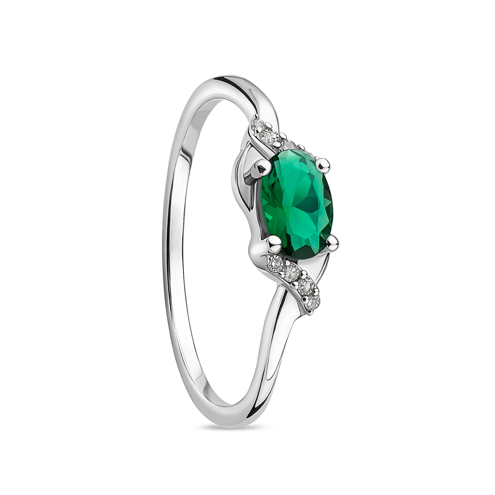Ring 9KT (375) White Gold Created Emerald and Diamonds.