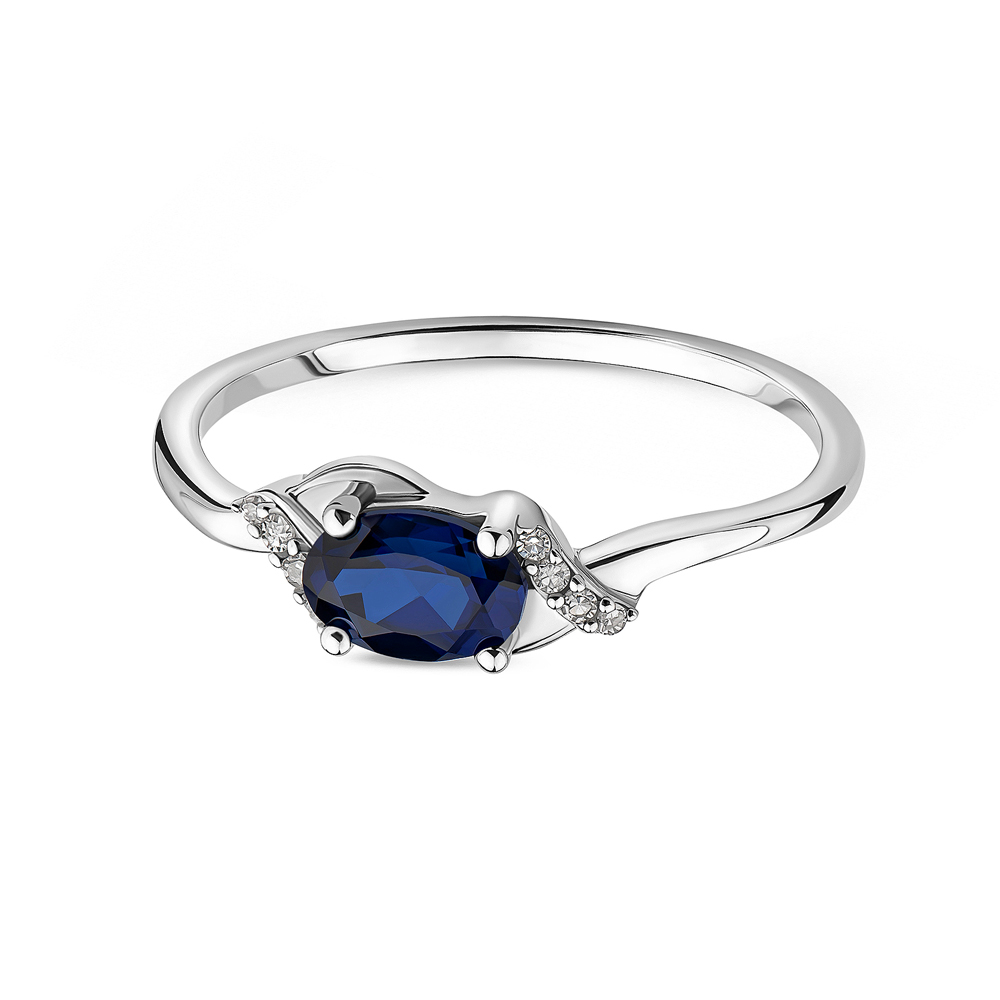 Ring 9KT (375) White Gold Created Sapphire and Diamonds.
